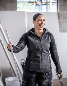 - Warm backed marl knit fleece with extol stretch sides, hood and underarm panels